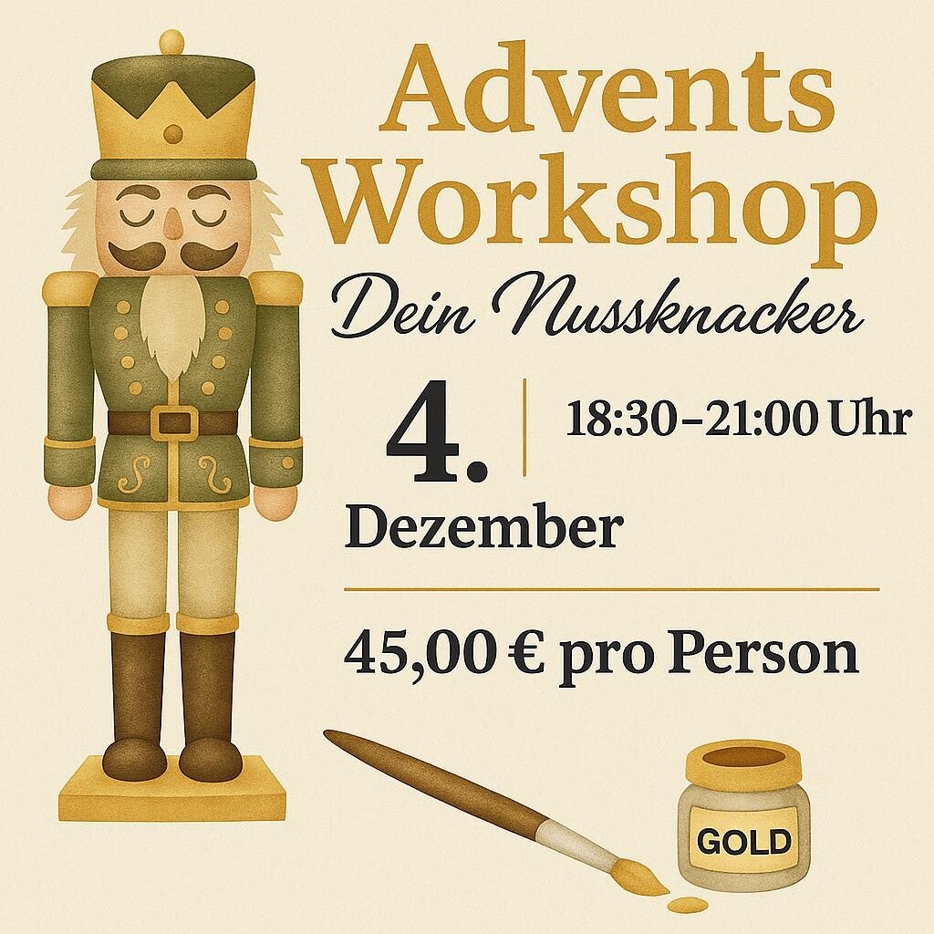 Erlebe einen kreativen und stimmungsvollen Nussknacker-Workshop in Fulda und genieße einen besonderen Adventsabend voller Inspiration, Farben und liebevoller Details!